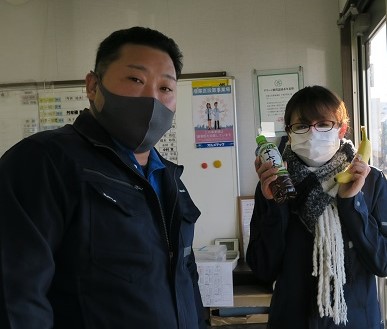 ドライバー職の朝食の摂取率向上の為、2日間朝食にバナナとお茶を配布しました。バナナは弊社の取引先より購入させて頂きました。思っていた以上に大きなバナナで驚きました。弊社では従業員が健康で長く働ける職場環境を構築する為の活動を行っておりその一環で今回はじめて実施致しました。食事の摂取方法や運動の重要性、喫煙率の低減を目指して活動を進めて参ります。ちなみに全車両禁煙車となっております。