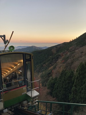 やっとケーブルカーに乗れ、下車した時の夕焼けが綺麗でした(*'▽')
