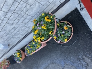 外にはパンジーが置いてあり、お客様をお出迎えしております。