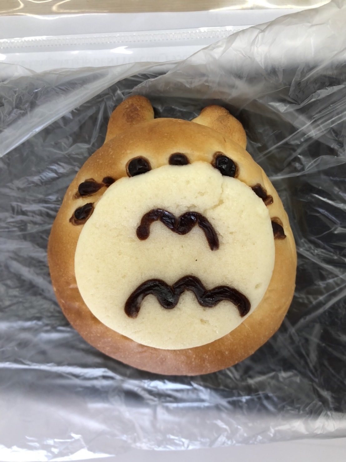 (下の写真は本社近くのパン屋さんで売っていたトトロパンです。)