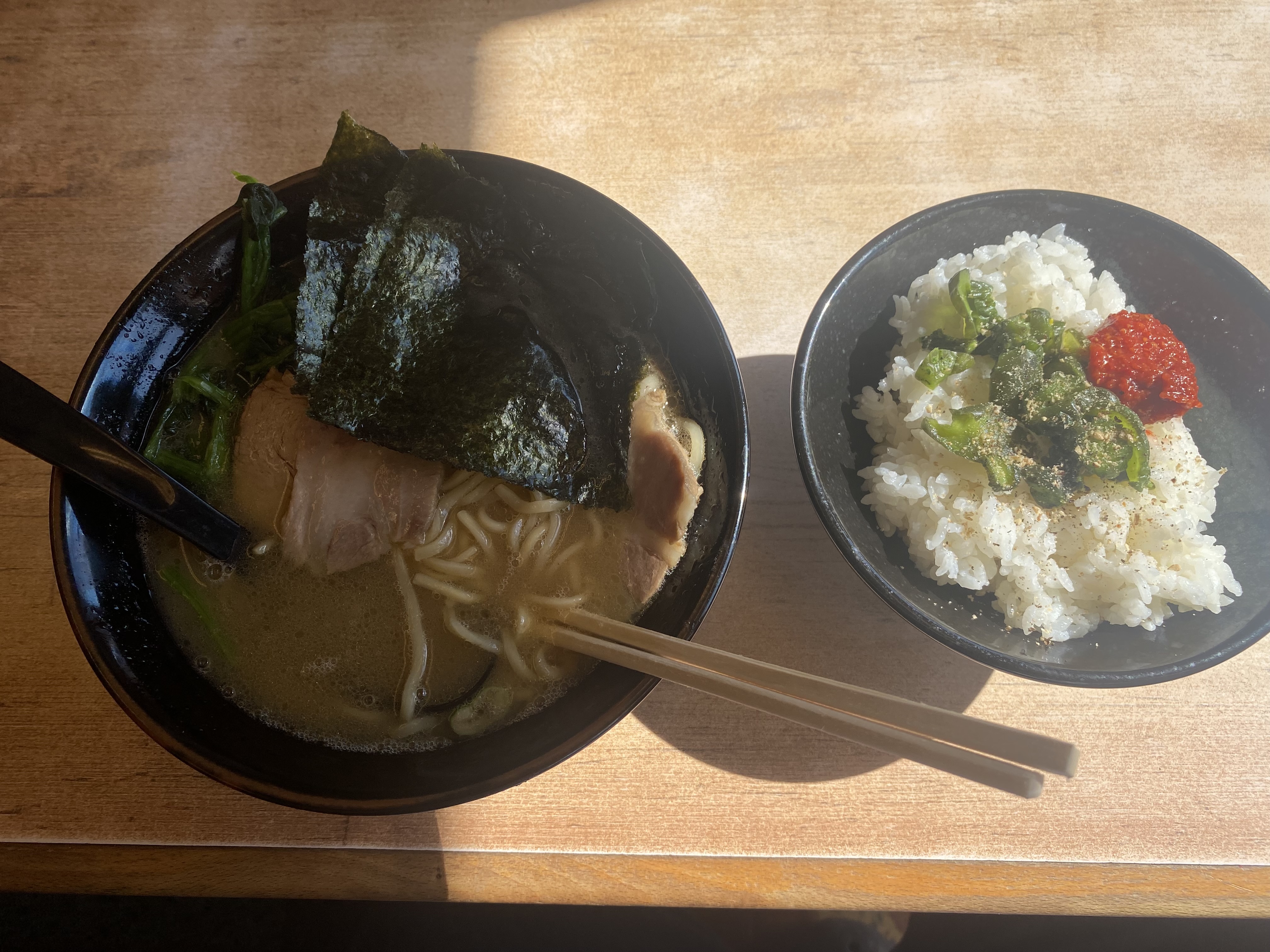 家系ラーメンにはもちろんライス(^O^)
