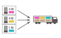 複数の荷主様の小ロット~中ロットの荷物を1台のトラックを共同で使用します。共同配送