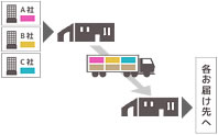 複数の荷主企業様の商品を配送先様ごとに積み合わせて一括配送します。